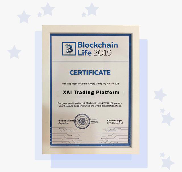 Blockchain Life 2019 Asia is one of the most prestigous events in the global blockchain industry. It is a forum that has a sensational impact on the internaional encryption market, global blockchain development as well as the global digital economy. Its aim is to bring together the world's most forward thinking elites in a platform that explores industry trends, cutting-edge technology as well as promotes socializing and strategic collaborations. XAI Trading Platform was awarded with the most potential certificate, marking its recognition by industry authorities of the global financial technology industry.